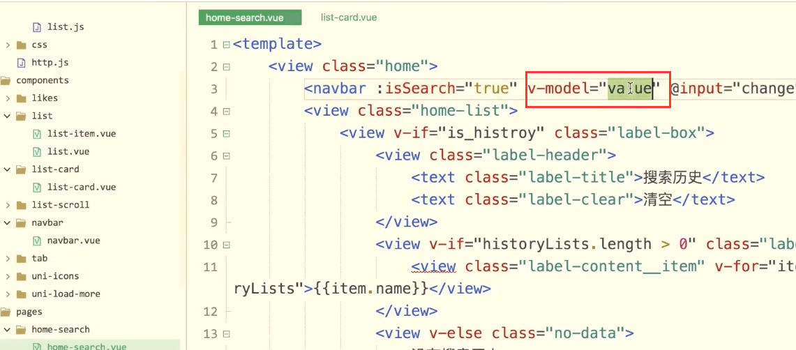 在navbar组件内,定义一个value,可以是String类型也可以是Number类型的,默认为空字符串。