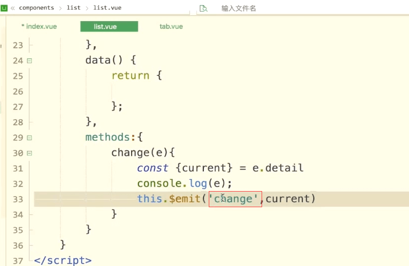 我们来注册一下这个change事件,打印一下看看chaneg事件给我们返回了一个什么样的内容。
