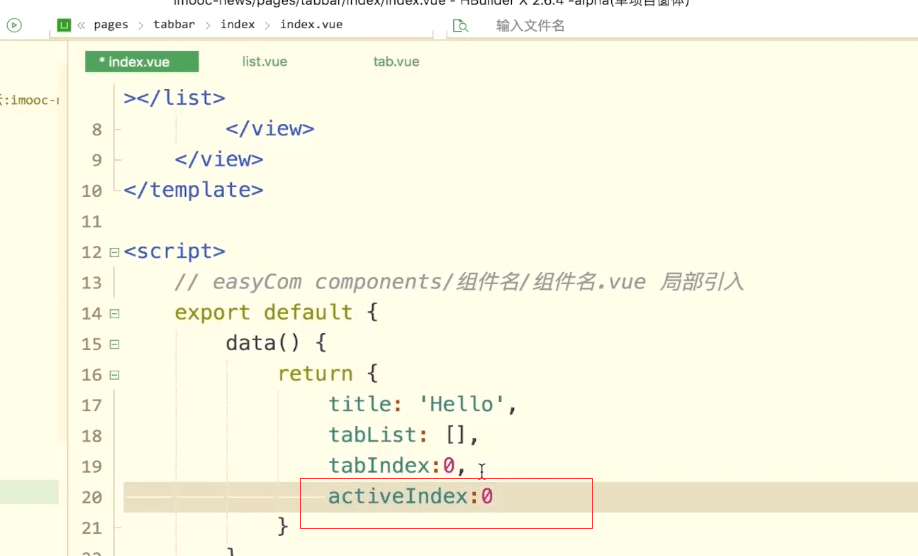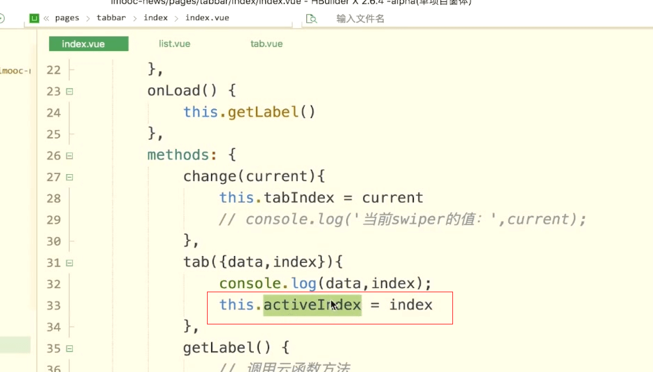 监听tabIndex就把tabIndex写到这里,再这里它是一个方法。它会接收两个值,一个是newValue是一个oldValue