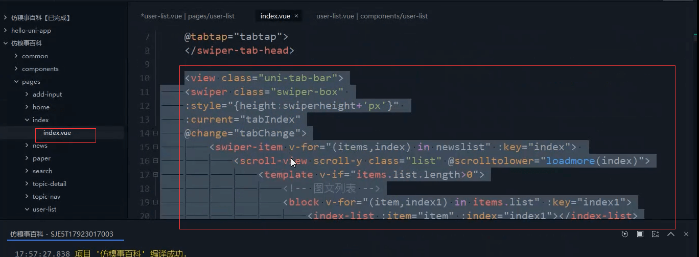 <block v-for="(item,index1) in items.list" :key="index1"><user-list :item="item" :index="index1"></user-list></block>