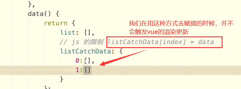 因为我们的数组是一个引用类型。更改之后,它不认为你发生变化了。所以并不会发生一个渲染。