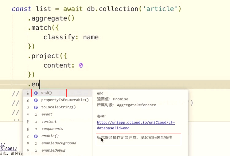 最后使用一个end