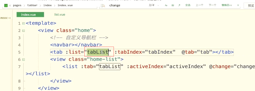 在index内传递的是一个tabList