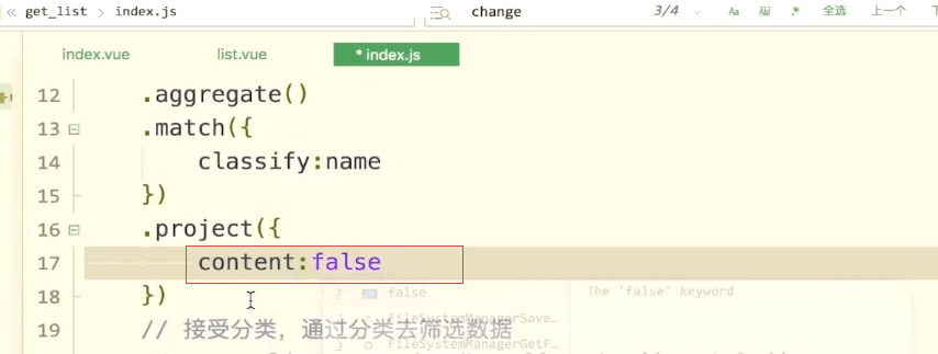 project是把指定的字段传递给下一个流水线。这里就可以指定某些字段返回到数据中,或者是某些字段不返回到数据中。
