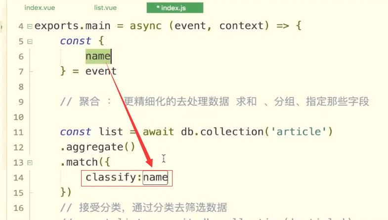 把name值传递给云函数。