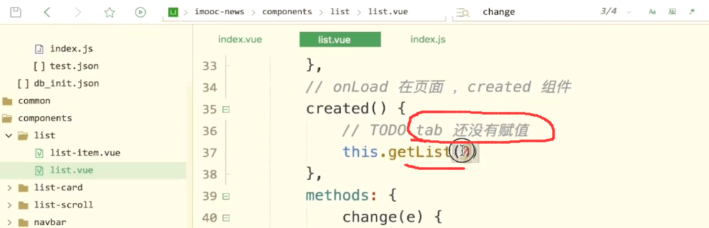 注释掉放到上面去执行,只有当我们的tab的长度不是0的时候才去执行getList方法。