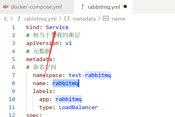 这样就给每个容器打上rabbitmq的标签。那么我们上面的service也就是负载均衡器,它就会将请求都均衡到所有打了rabbimq标签的rabbitmq节点上。