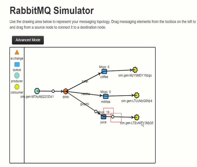 发送的消息是hello world。routing key是naicha,发送的频率是1秒1个