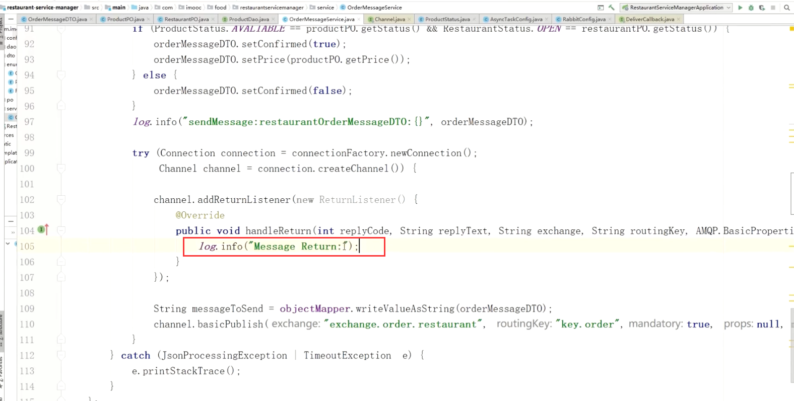 所以我们发送完消息,它就会被自动的关掉了。因为它走出了try块。那我们之前注册的returnListener就不管用了。