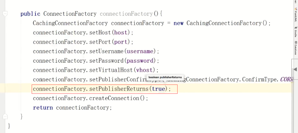 首先需要创建connectionFactory的Bean,先创建CachingConnectionFactory然后设置它的ip地址、端口等。这些是链接的属性。这些我们以前是硬编码到代码里面的。