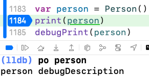class Person : CustomDebugStringConvertible {var age: Int = 0var debugDescription: String {get {"I am a person, age \(age)."}}}var p = Person()debugPrint(p)