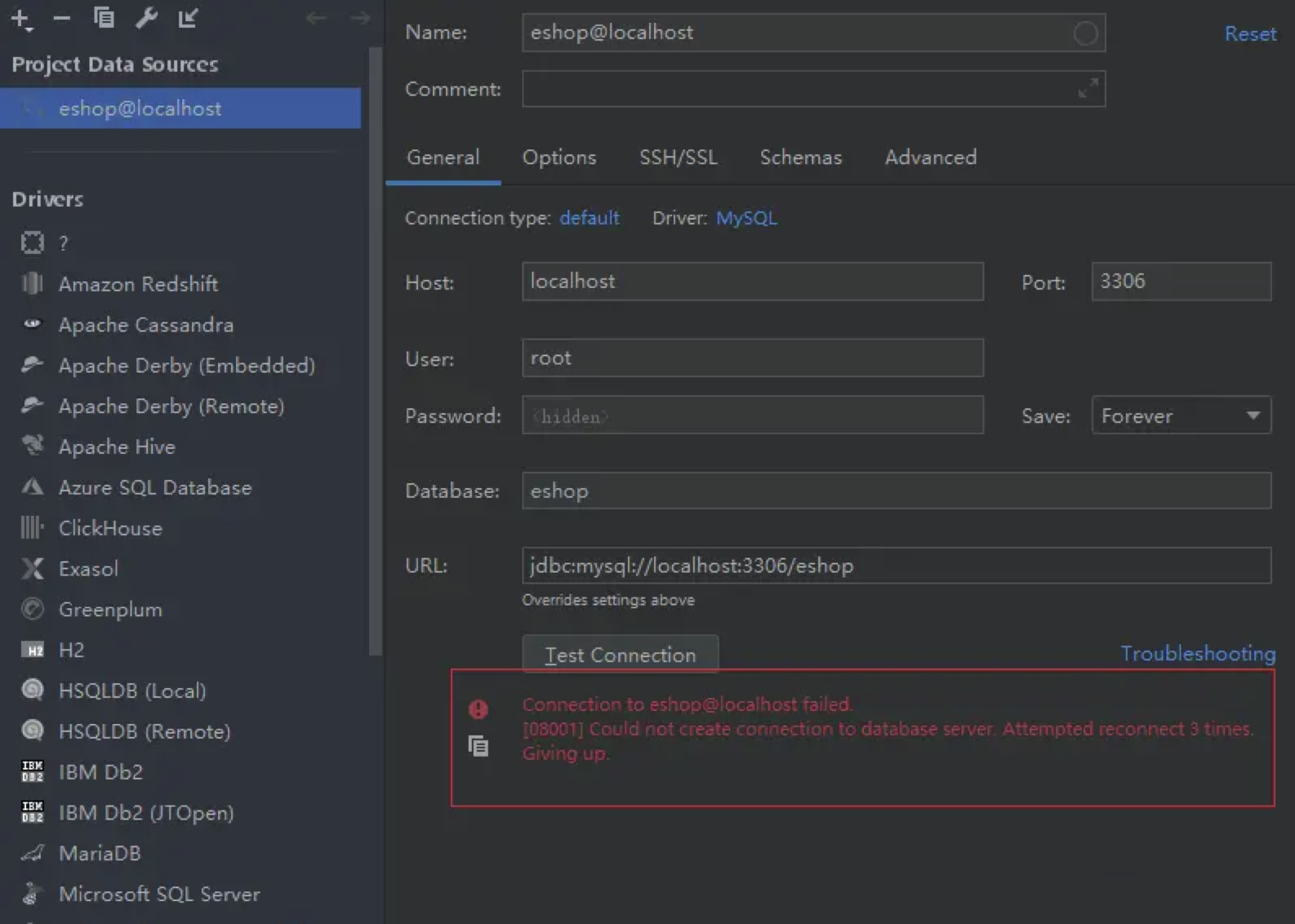 出现这个报错的原因其实就是IDEA连接数据库驱动的版本不对,之前的IDEA使用的是5.1.47版本,所以没有问题,2019.1.3版的IDEA默认使用的是8.0.15所以连接不上数据库.只要把版本换回5.1.47即可解决这个问题.