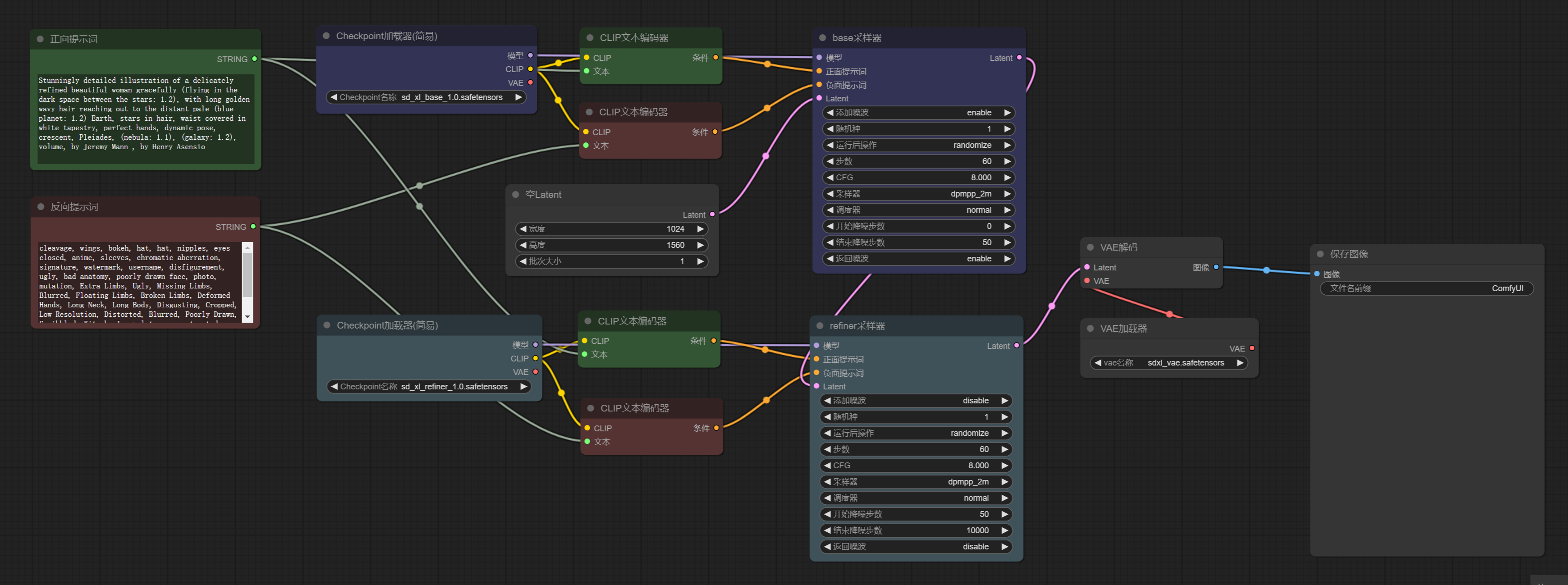 - 上节课我们学习了文生图的基础流程,接下来我们玩个复杂的,把 refiner 模型串联进去。