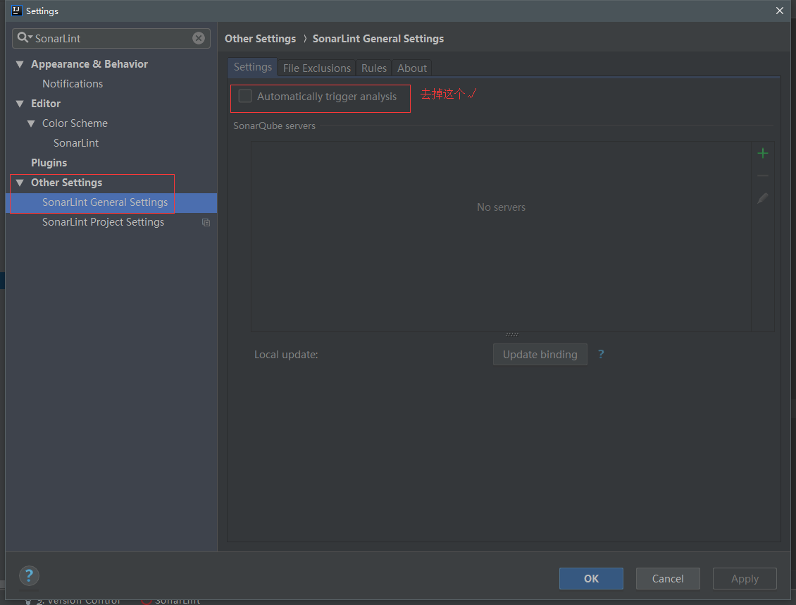 1.Codota 代码智能提示插件2.Alibaba Java Coding Guidelines 阿里巴巴代码规范检查插件3. MybatisX 高效操作Mybatis插件4. SonarLint 代码质量检查插件5. MetricsReloaded 代码复杂度检查插件6. GitToolBOx git增强插件 1.Codota 代码智能提示插件 2.Alibaba Java Coding Guidelines 阿里巴巴代码规范检查插件 3. MybatisX 高效操作Mybatis插件 4. SonarLint 代码质量检查插件 卡顿问题处理, 不开启自动检测 5. MetricsReloaded 代码复杂度检查插件 6. GitToolBOx git增强插件
