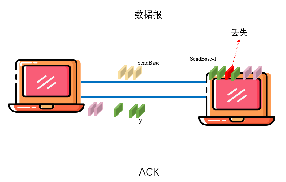因此 SendBase-1 是指接收方已正确按序接收到的数据的最后一个字节的序号,如前面指出的那样,TCP 采用累积确认,所以 y 确认了字节编号在 y 之前的所有字节都已经收到。