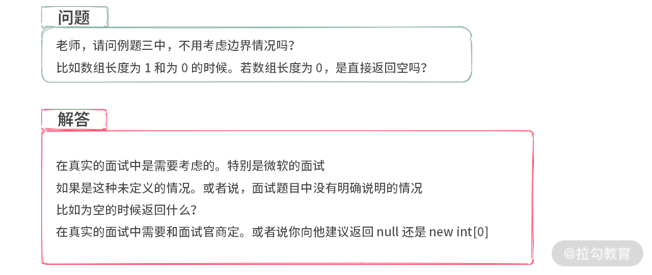 【小结】在面试中,写代码时一定要注意边界验证。接下来我们看一下关于题意的交流。