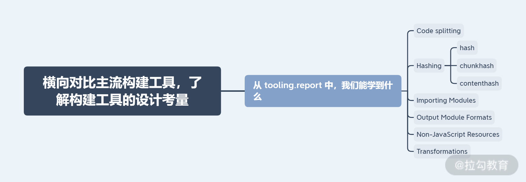 这里需要你深入思考:这 6 个维度到底是什么,为什么它们能作为考量指标被选取为评测参考标准?实际上,这个问题反映的技术信息是:一个现代化构建工具或构建方案,需要重点考量 / 实现哪些环节?