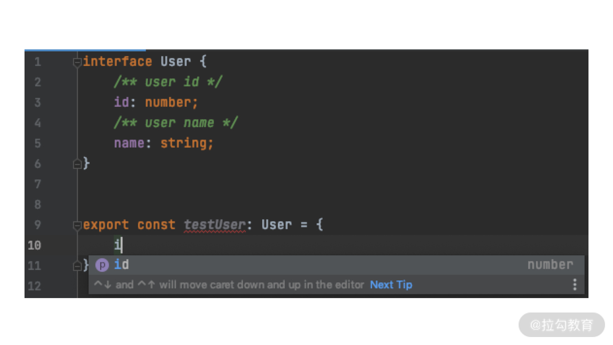 除了类型定义之外,TypeScript 语言服务还能将使用 JSDoc 语法编写的结构化注释信息提供给 VS Code,而这些信息将在对应的变量或者类型中通过 hover 展示出来,极大地提升了代码的可读性和开发效率,如下图所示: