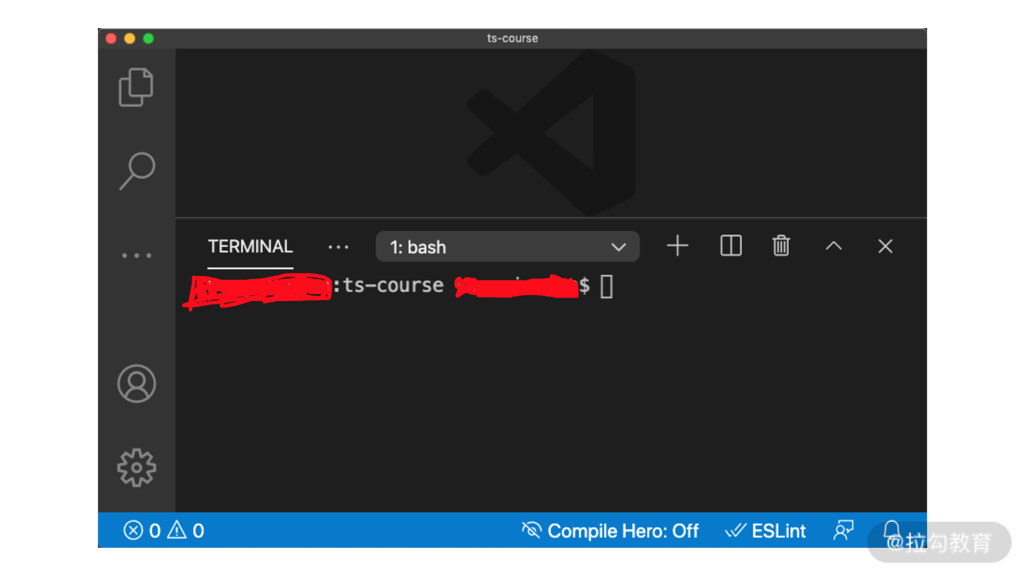 最后,我们创建了一个 ts-course 的应用目录用来记录学习过程中的各种练习例子,然后使用 VS Code 即可打开这个应用。