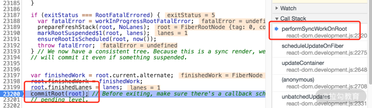 commit 会在 performSyncWorkOnRoot 中被调用,如下图所示: