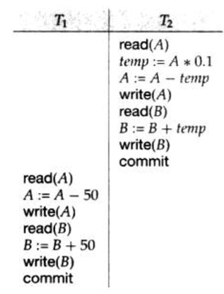 - 可串行化是一组事务的调度包含该事务所有指令,不能中间插入,一般表示为