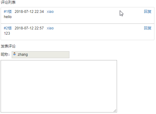 换一个zhang用户登录,访问一篇有回复的博客,点击回复,效果如下: