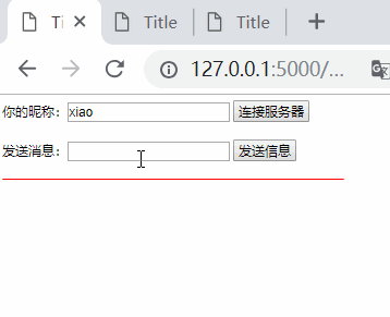 开3个网页,输入昵称,开始聊天。注意:每个网页,连接服务器一次,就可以了!