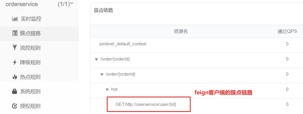 默认情况下sentinel会监控SpringMVC的每一个端点(Endpoint,也就是controller中的方法),因此SpringMVC的每一个端点(Endpoint)就是调用链路中的一个资源。