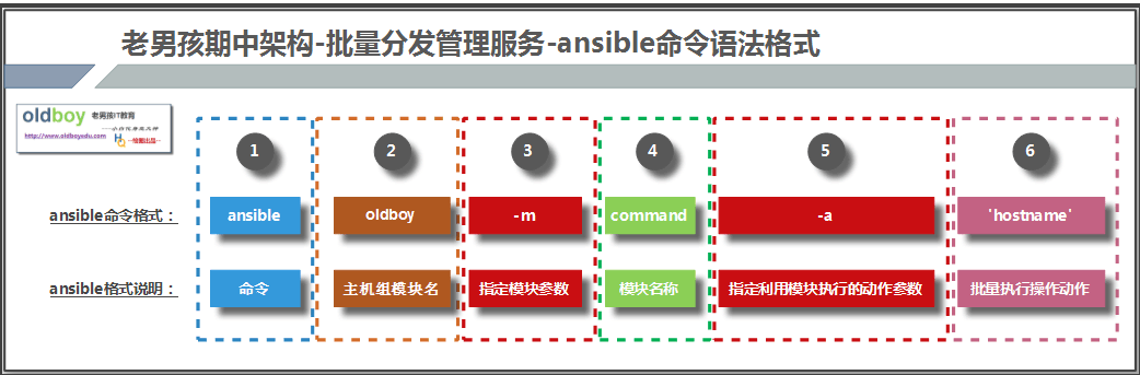 - ansible clsn -m command -a “hostname” <- 批量执行命令举例