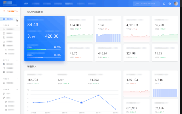 B-Design蓝,渐变色应用在导航、高亮卡片、数据图表中