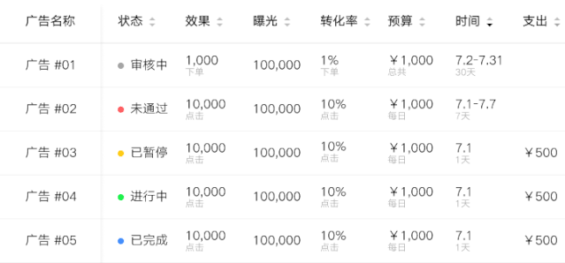 它们虽功能各异,但是ToB 管理后台中有一个共同点——大量使用表格,这可能是效率最高的信息展示方式了。表格可以高效组织信息和数据,让用户方便阅览、对比和分析。