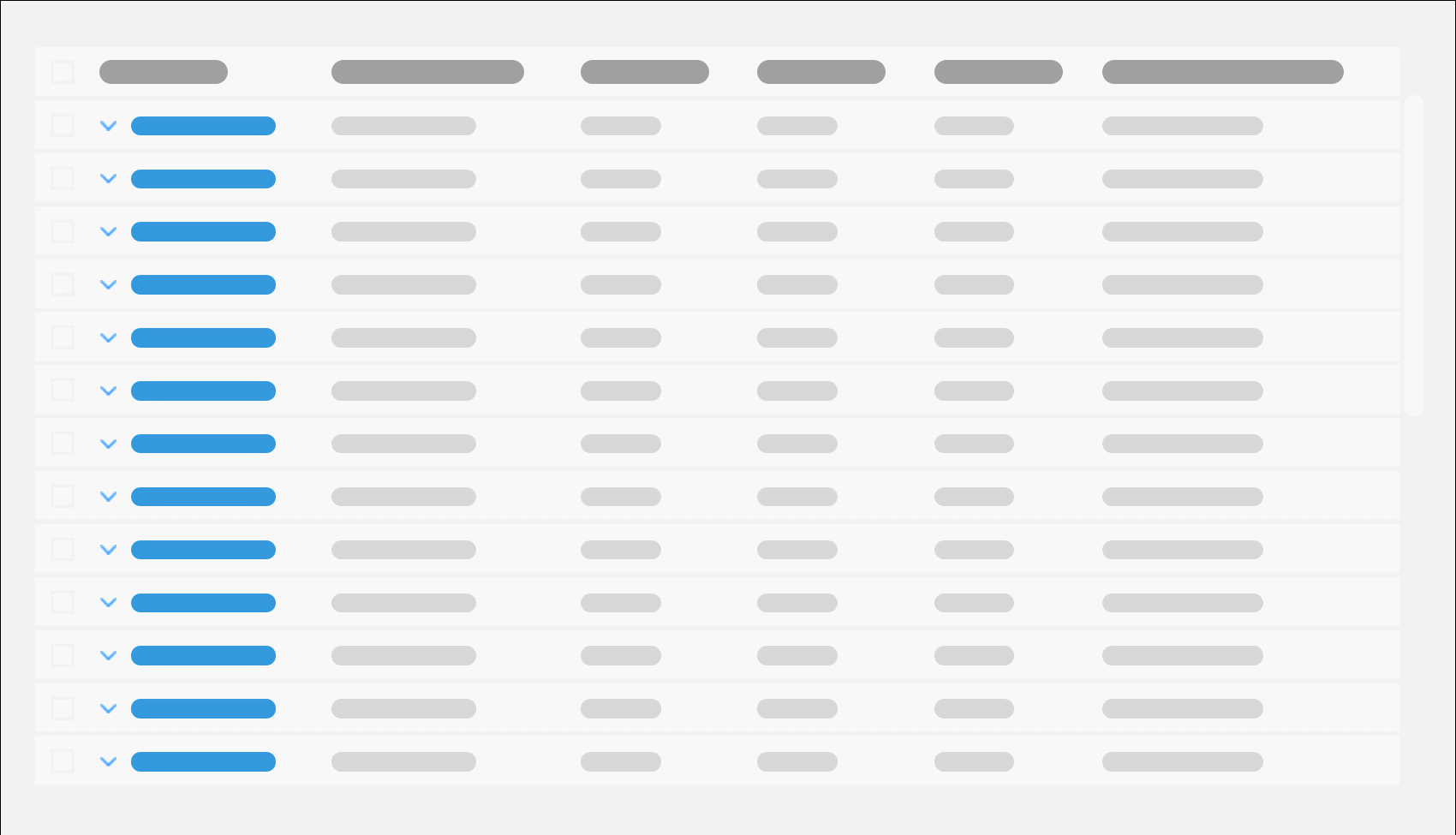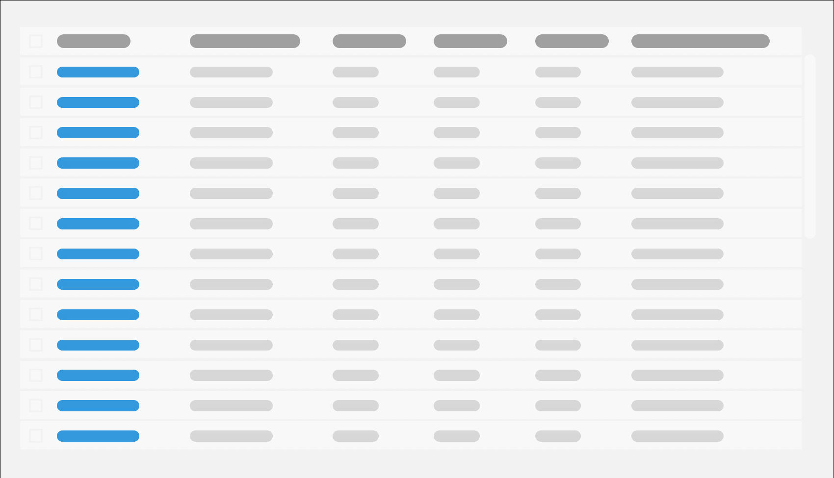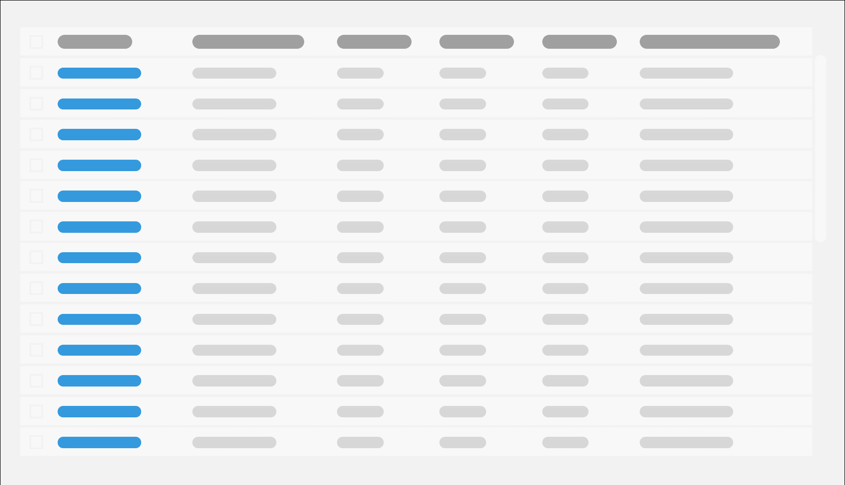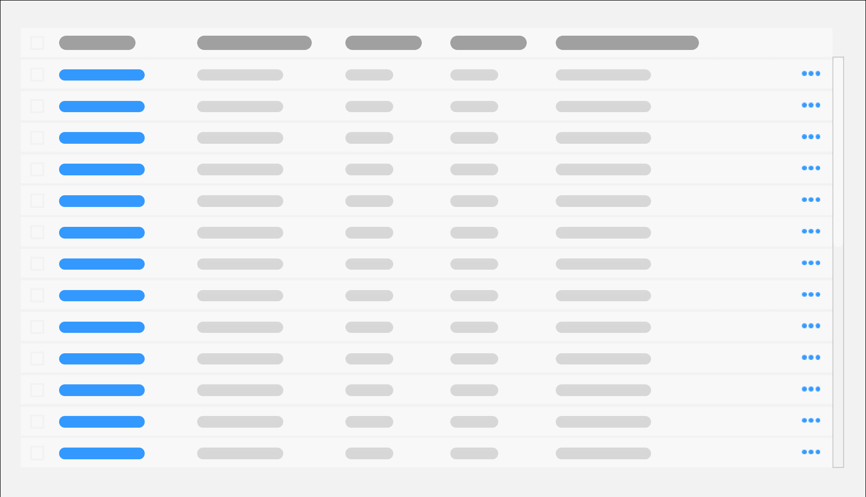 第一类表格以行为一组,表头通常固定在最上端不参与滑动,现代设计为了美观通常也没有单元格的线框,设计时为了更直观的体现一条数据,可以在每条数据之间留一个缝隙。