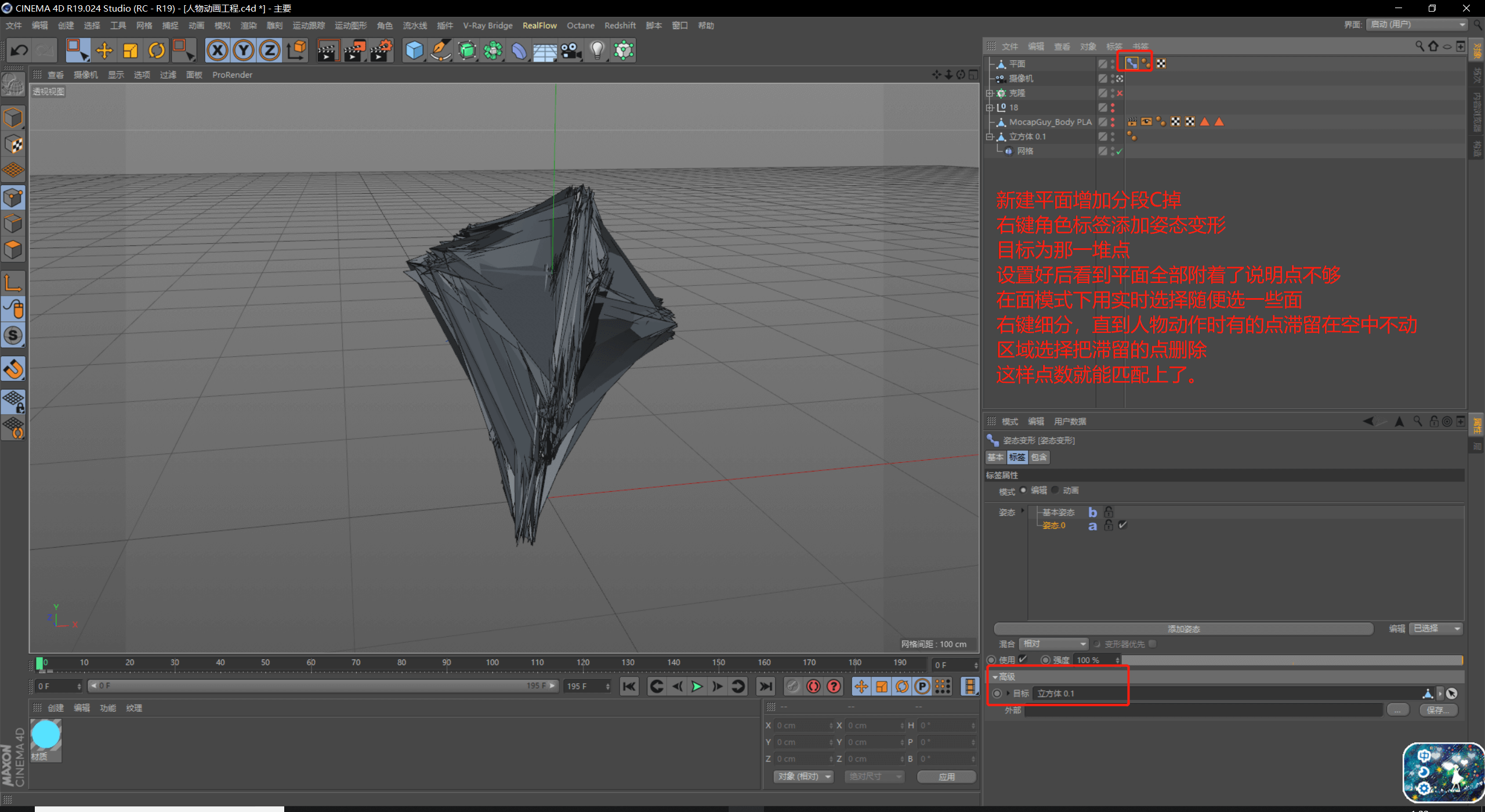 注意!当前状态转对象时一定要在第一帧转对象,否则添加网格因为与提取出来的模型不匹配从而导致点到处乱飞
