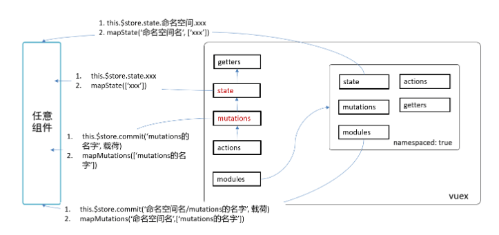 举例this.$store使用全局的正常用就行,使用map函数就是在前面加/一个模块的名字就行(中间用/分隔)
