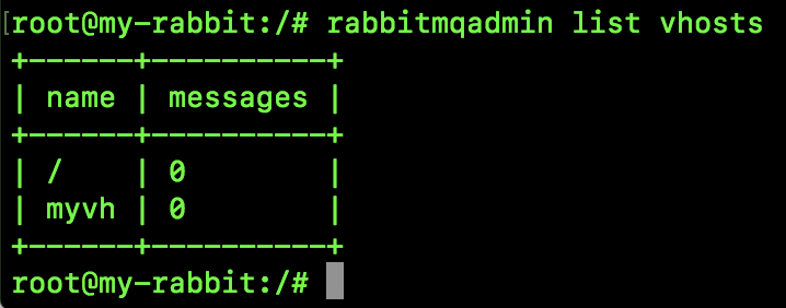 $ rabbitmqadmin list vhosts