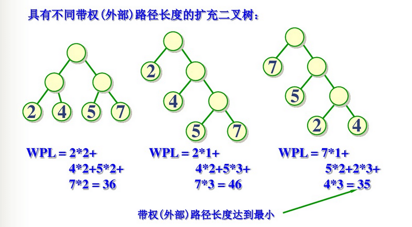 路径长度(Path Length,PL)带权路径长度(Weighted Path Length,WPL)霍夫曼树1. 特点2. 霍夫曼算法3. 霍夫曼树的构造过程哈夫曼树也是一种特殊的二叉树,这种树的所有叶子结点都带有权值,从中构造出带权路径长度最短的二叉树。 路径长度(Path Length,PL) 带权路径长度(Weighted Path Length,WPL) 霍夫曼树 1. 特点 带权路径长度达到最小的扩充二叉树即为霍夫曼树。在霍夫曼树中,权值大的结点离根最近。 2. 霍夫曼算法 3. 霍夫曼树的构造过程