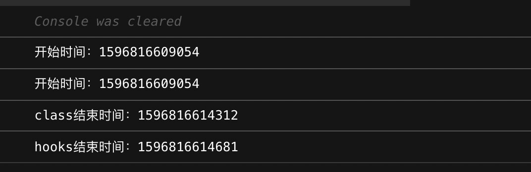 import React, { PureComponent } from "react";import ReactComponent from "./classTest.jsx";import HooksComponent from "./hooksTest";class Test extends PureComponent {constructor(props) {super(props);console.log(`开始时间:${new Date().getTime()}`);}render() {return (<div><HooksComponent /><ReactComponent /></div>);}}export default Test;