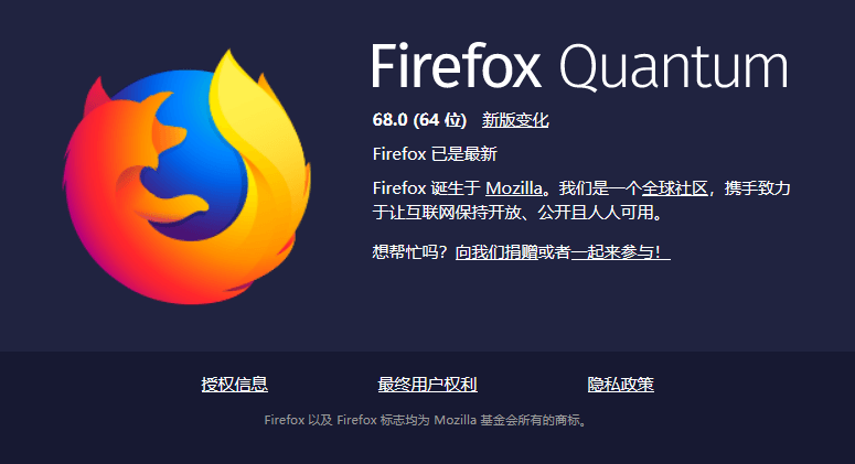 今天,又重新安装了一下 Firefox Quantum-68.0 (64 位),不同的是这一次安装的是国际中文版,而不是北京谋智火狐的版本。