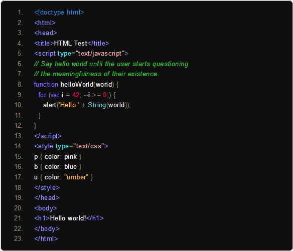 这样就没有问题了,可以直接用 markdown 的前置 4 空格来写代码了。其中 addClass('prettyprint linenums') 的 linenums 是添加行号的意思。默认只显示第 5、10、15… 行,可以在 css 文件中 li 的格式添加 list-style-type: decimal; ,以显示全部行号。