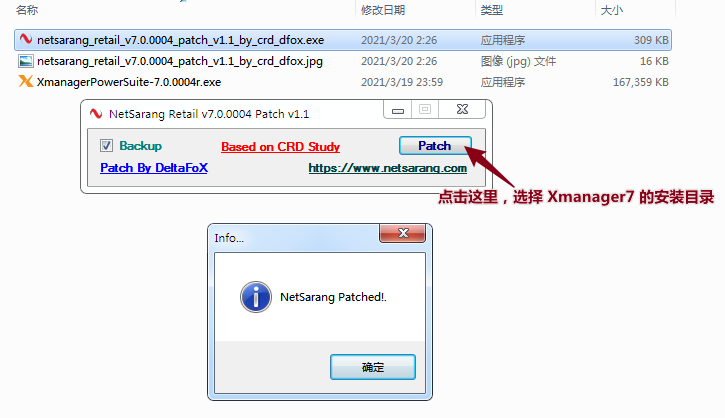 - 打开注册机 netsarang_retail_v7.0.0004_patch_v1.1_by_crd_dfox.exe,点击 patch 开始破解;
