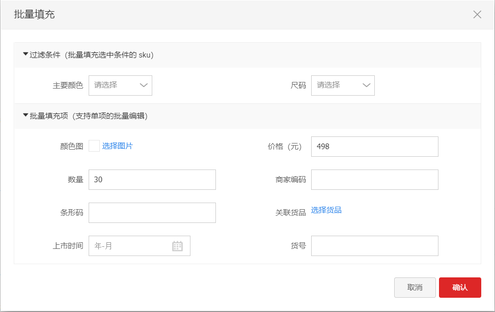 2、填充sku信息和上架页面中批量填充的逻辑一致