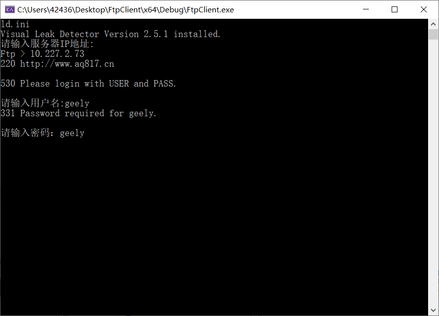- 软件初始运行时,需要用户输入需要使用的FTP服务器IP地址