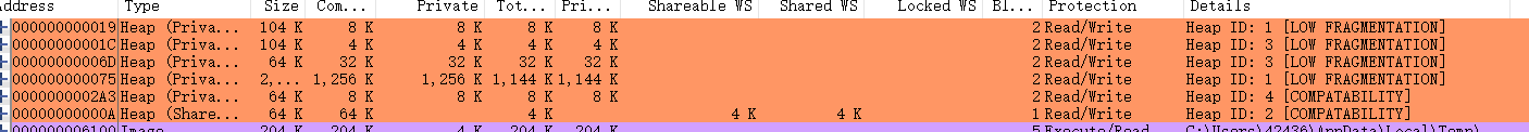 VMMap是对进程所用虚拟、物理内存进行分析的工具,可以统计进程所使用的虚拟、物理内存并以条形图与文字的形式进行呈现。VMMap的过滤和刷新功能可以及时观察进程内存使用的来源以及占用情况。 运行KSvgEditor项目,并使用VMMap工具进行检测,可首先观察到如下界面。