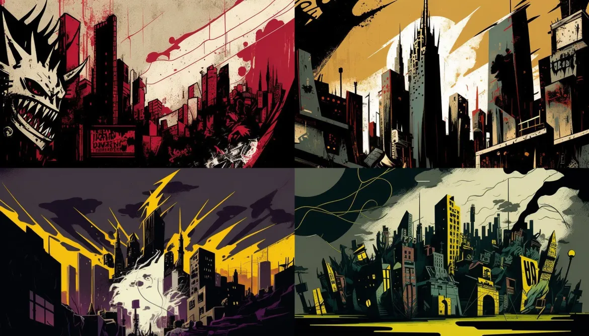 In the following, I’m using 16:9 and just sharing the first, rough draft, without any upscaling, to give you an idea of the potential styles. Even if not perfect, Midjourney is pretty great at conveying the idea. These aren’t the best examples of what midjourney is capable of (though I’ll share a few more advanced tricks at the end!)
