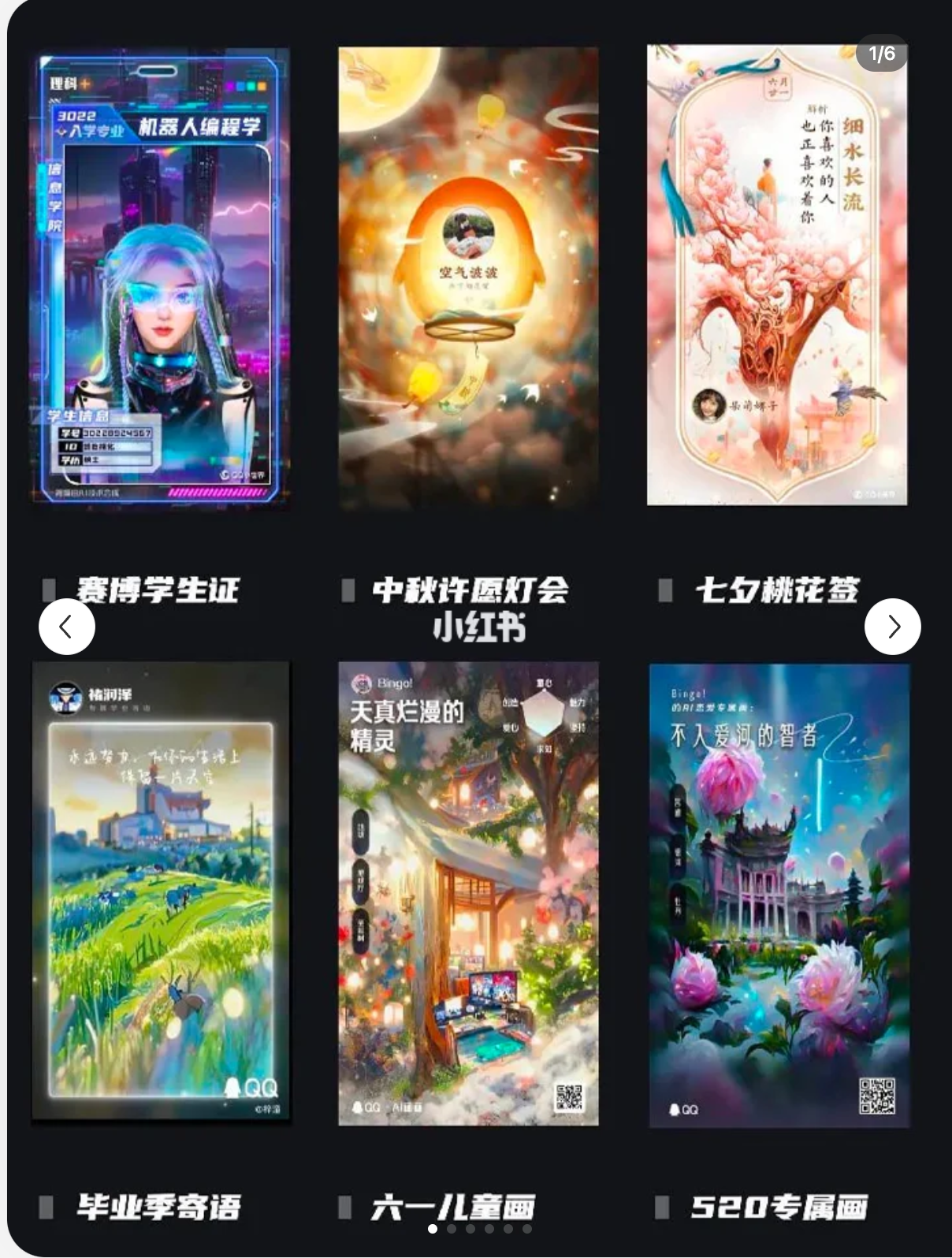结合AI突出的画面想象力,我们与AI画手一起,打造了更有情节代入感的开学季学生证玩法。基于AI绘制的未来学科专业的专属科幻场景,搭配以实时生成的用户动漫形象,为用户制作独特的具有科技赛博感的入学证件。