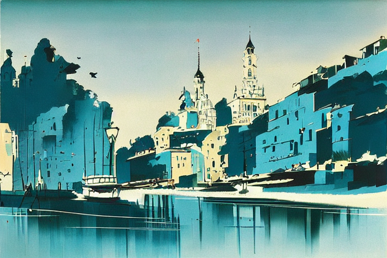 Prompt: artwork by Eyvind Earle, stunning city landscape, street view, detailed