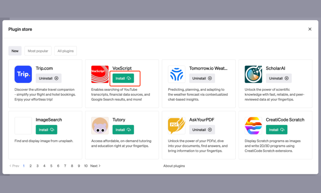 根据自己的需求,选择相对适合的三个插件(目前官方只可同时启动最多三个插件,进行数据调用)