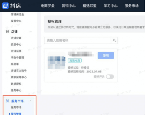 4) 商家授权:服务市场—-授权管理—-点击使用—-建联完成