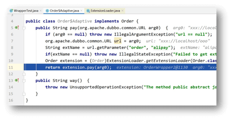 下面我们准备要定义 Adaptive 方法。那么 Adaptive 方法的定义有什么要求呢?我们通过查看动态生成的 Adaptive 类来总结 Adaptive 方法的要求。