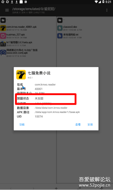 2.打开软件查看后,要做的就是把左边和右边的两个dex文件合并